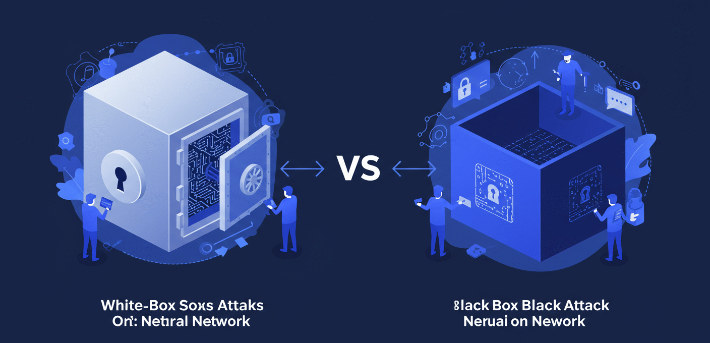 Was ist der Unterschied zwischen White-Box- und Black-Box-Attacks? White-Box-Attacks nutzen internen Modellzugriff für präzise Gradienten, während Black-Box-Attacks nur Ausgaben abfragen und auf Transferabilität setzen, was sie realistischer für externe Bedrohungen macht.