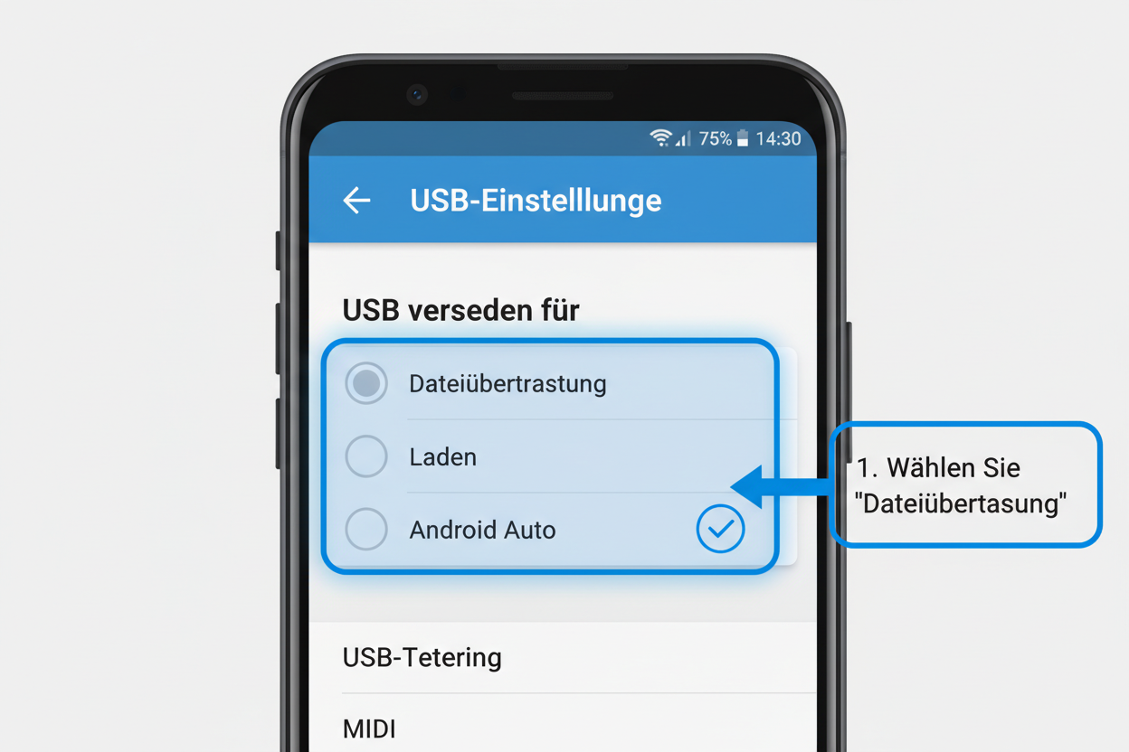 Dies ist der erste und oft entscheidende Schritt bei Verbindungsproblemen. Viele Android-Geräte sind standardmäßig im Lademodus, wenn sie an einen Computer angeschlossen werden. Um Dateien zu übertragen, muss der Modus explizit auf „Dateiübertragung“ (MTP – Media Transfer Protocol) oder „Android Auto“ umgestellt werden. Dies geschieht in der Regel über die Benachrichtigungsleiste, die nach dem Anschließen des USB-Kabels erscheint.