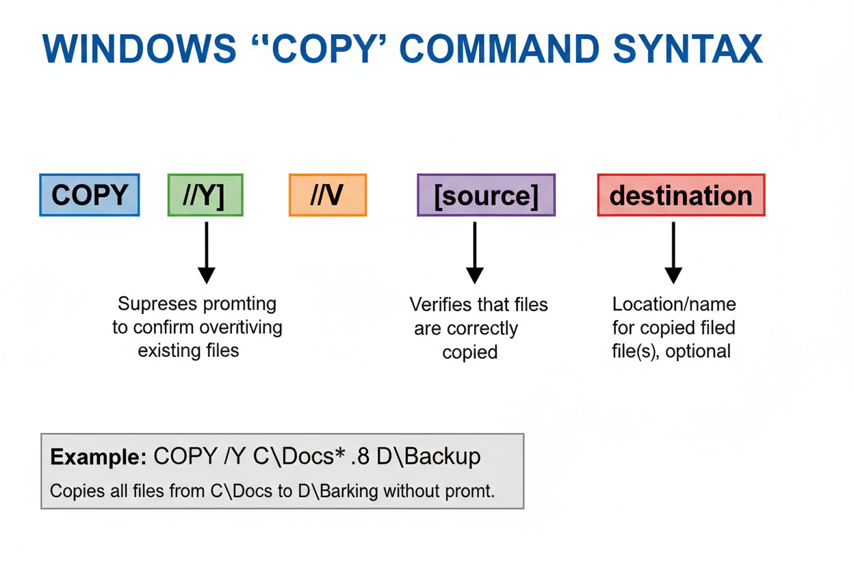 Lernen Sie den Windows `copy` Befehl in der Command Prompt kennen. Dieser Guide erklärt Syntax, Optionen und praktische Beispiele für effizientes Dateimana…