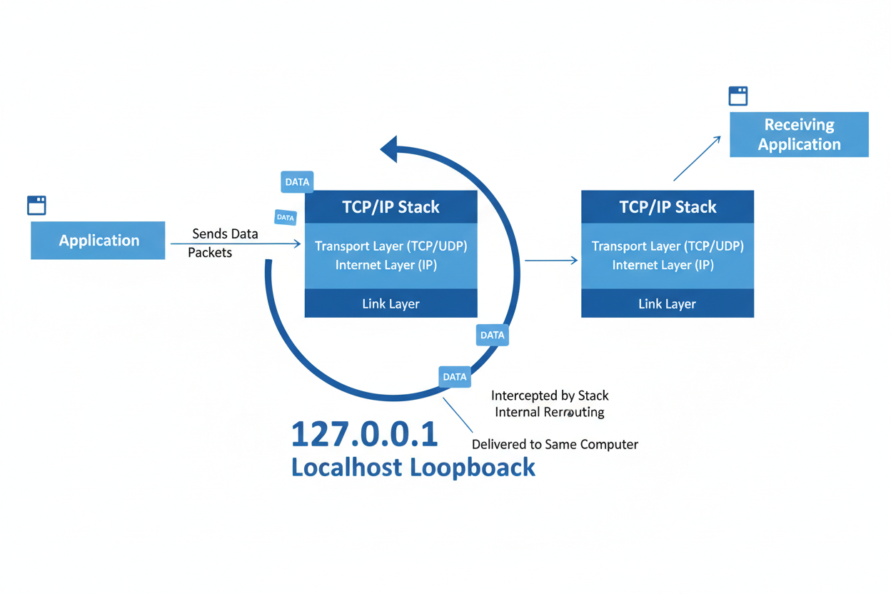 - Lokale Kommunikation: Alle an 127.0.0.1 gesendeten Daten bleiben vollständig innerhalb des sendenden Computers.