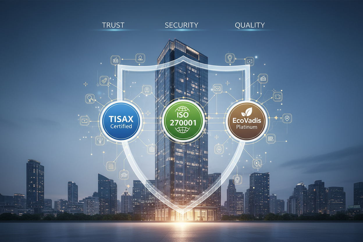 Erfahren Sie, wie anerkannte Zertifizierungen wie TISAX, ISO 9001 und EcoVadis das Fundament für Vertrauen, Sicherheit und Qualität in modernen Unternehmen…